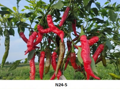 N24-14 45 淺綠 線椒 67 9.74 長勢旺,株開展,果色淺,果中長,掛果多